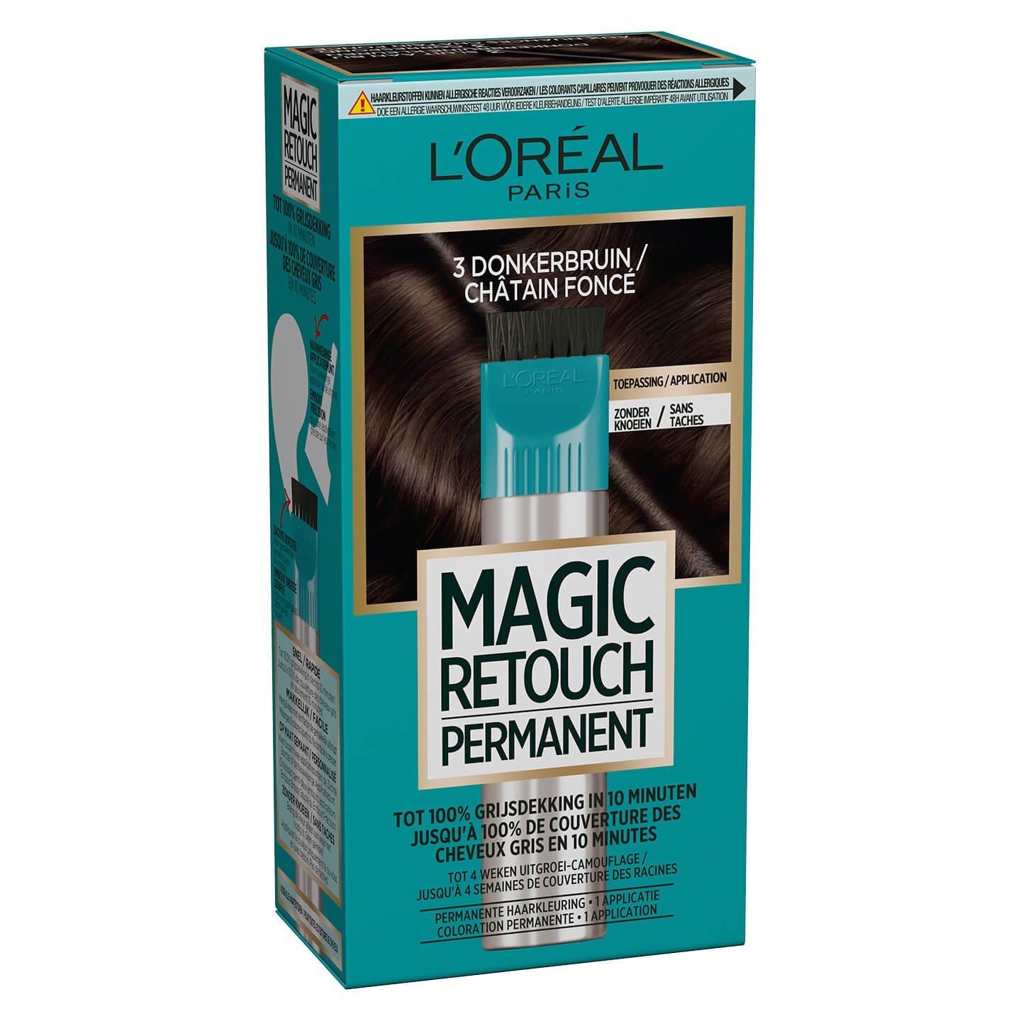 Magic Retouch Permanent offre une solution permanente pour camoufler facilement et rapidement les repousses jusqu’à 4 semaines. Cette coloration permanente couvre vos repousses en 10 minutes, y compris les cheveux gris.