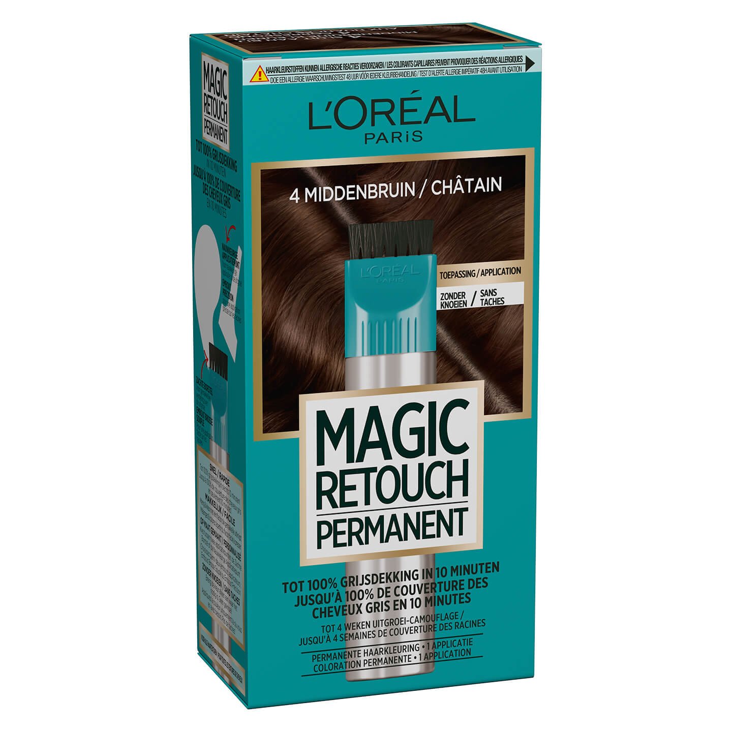 Magic Retouch Permanent offre une solution permanente pour camoufler facilement et rapidement les repousses jusqu’à 4 semaines. Cette coloration permanente couvre vos repousses en 10 minutes, y compris les cheveux gris.