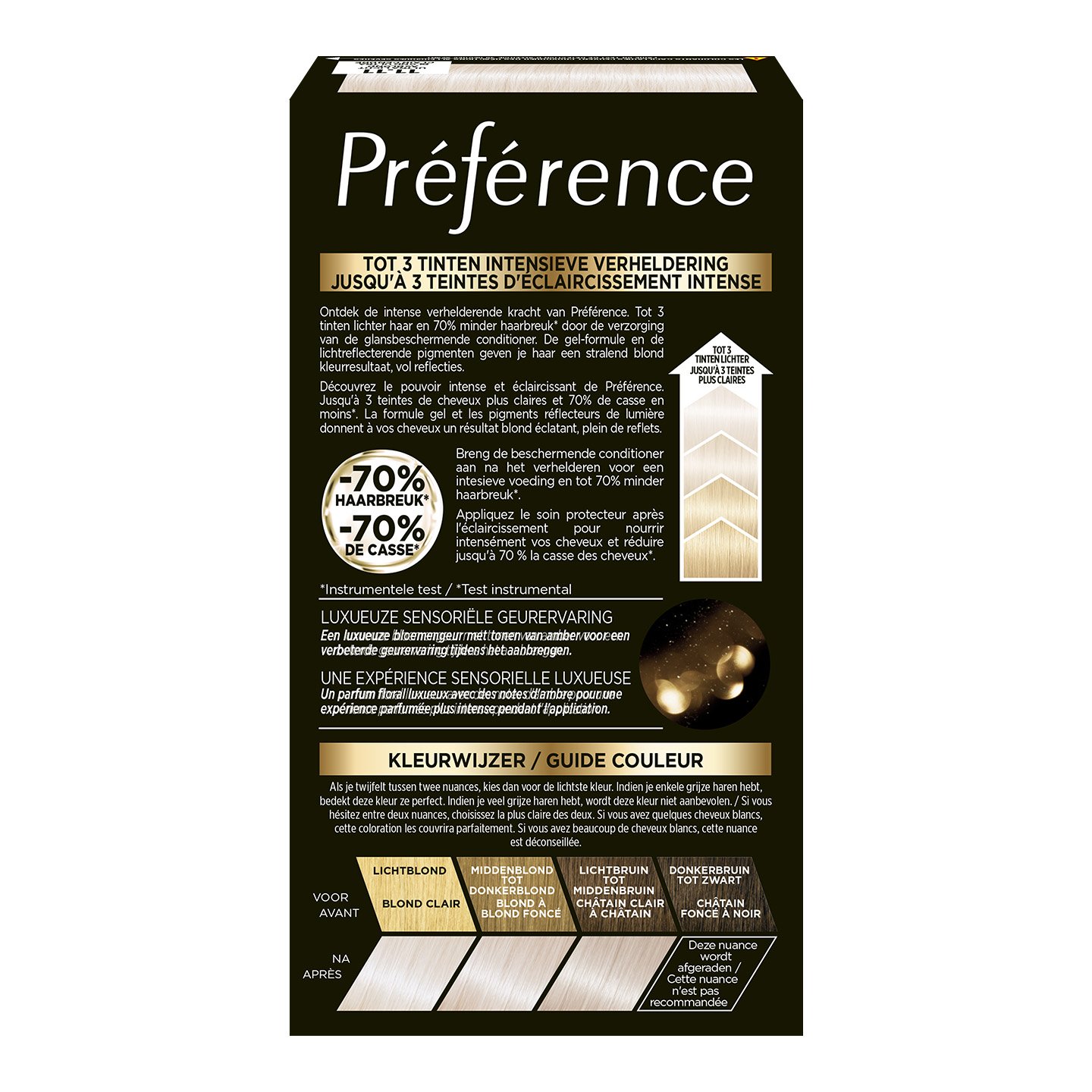 L’Oréal Paris Préférence Le Blonding est une coloration capillaire permanente à action éclaircissante, qui éclaircit les cheveux naturels, non colorés jusqu’à 3 tons.