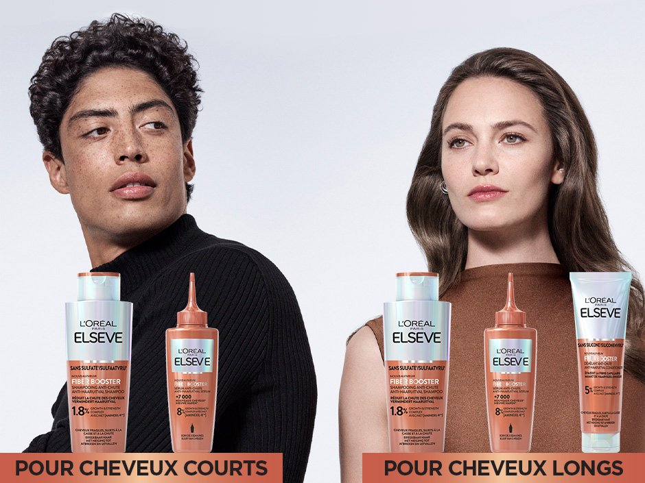 Découvrez des cheveux plus épais, plus forts avec Elvive Fiber Booster. Nos tests consommateurs ont montré des résultats impressionnants, avec des utilisateurs constatant une réduction de la chute de cheveux* et jusqu'à +7000 nouveaux cheveux**. Rejoignez-les et découvrez la confiance en soi qui accompagne des cheveux qui ont l’air sains et pleins de vie.