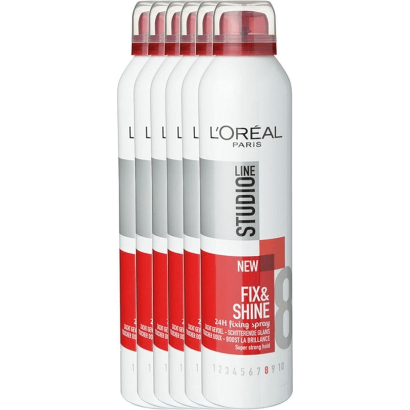 La laque coiffante Studio Line Fix & Shine Fixation Super Forte de L'Oréal Paris offre une fixation ultra-forte et maîtrise frisottis et cheveux rebelles. Le 1er spray micro-aéré de Studio Line pour parfaire votre coiffure et apporter de la brillance en un seul geste. Optez pour la laque coiffante Studio Line Fix & Shine Fixation Super Forte pour une belle brillance naturelle.