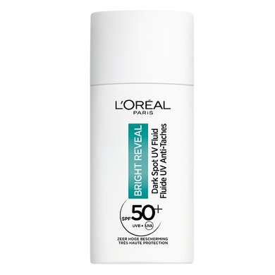 L’Oréal Paris Bright Reveal Dark Spot UV Fluid SPF 50 werd speciaal ontwikkeld voor een optimale vermindering van pigmentvlekken. Deze moisturizer heeft een klinisch bewezen doeltreffendheid: 53% minder pigmentvlekken, een 43% stralendere teint en 38% minder fijne lijntjes. Bescherm je huid dagelijks tegen UV-straling om huidveroudering en pigmentvlekken te voorkomen. Geniet van betrouwbare resultaten dankzij UVB- en UVA-filters die voorkomen dat er opnieuw donkere vlekken verschijnen. Daarnaast bevat de moisturizer ook 2% niacinamide om donkere vlekken te verminderen en LHA en vitamine E voor een exfoliërend en antioxiderend effect.