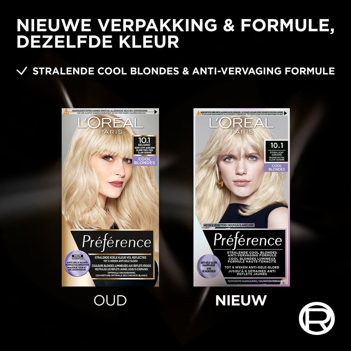 L’Oréal Paris Préférence Cool Blondes is een permanente haarverf die tot 100% grijsdekking biedt. De kleuring is speciaal ontwikkeld om een langhoudend, koel kleurresultaat te kunnen bereiken.